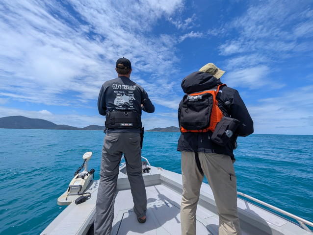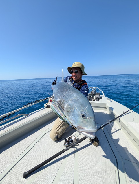 シャロー珊瑚礁のライトキャスティング行こうぜってなったけど風強くて ボウエンから2時間後ホワイトサンデーの港から出し直し、、、4時起きだったのにwまあいいわ、ホワイトサンデーから南東側にいくつか島があってそこらに魚が居るのでそこでGTやその他を狙うそこそこは釣ることは可能だただ、結構いいキャストしないとでない傾向は強い。常に上手な人間だけで行けば数匹釣れるところも、へたっぴで行くと大して魚も出ずに終わる。向かい風で60−70mは普通に投げられるなら問題はないが 大きく振れる飛距離やアキュラシーでは結果はでない。