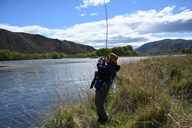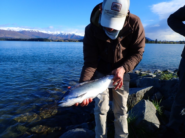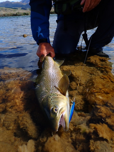 翌日トワイゼルから若干外れてタカポ湖から流れる運河に行った。で何かやるかというとまたもや気に食わないエッグの釣りであるまあ昨日のフライより面白そうだったが、その入り口でブラウンがウロウロしてたのでダンカン氏にまたもやガイドを押し付けて単独行動wマジックカーペットとは釣り専用に整備されている釣り区間らしくというふれ込みだったが本当にそうかは知らない。皆竿片手に溝の3分の2ぐらいに錘セット投げて50m位歩いている。そのうち数人の竿が曲がって魚と共に下流に走るっていう感じだ。まあ面白いかんじだ。自分はというとその竿のアーチの中それを潜ってスポーニングベッドにいるトラウトを釣らされていた。フライを含めて基本皆がやってる釣りは100%こうだガイドは別角度からルアーないしフライを見る。キャストしたのちルアーの所在を知らされる、つまり俺は釣り専用ロボットなのだ もうちょい奥だ、ストップ、今魚がみてる、とか 動かせとか リモートされてる訳でこれで釣って果たして釣ったって言えるのか?北海道行ってガイドの言いなりに動かして自慢するぐらいなら買って自慢しろって思う。まあ そんな心の葛藤を他所に10キロぐらいのメスが食いついてジャンプして外れた。てかあまりの茶番がすぎるので合わせんかった。ガイドは盛り上がってたけど自分は大分テンション下がってる。まあスポーン中の魚を狙うのは エッグの釣りも同じなので基本皆やっていることは同じな訳だが何よりロボット感が半端ない。後ろから新しいフレッシュな若いマスが来たのでそれをフックしてみるまあまあだが、相変わらずのグネグネだそりゃ0・6号で上がるよねって感じだ。夕方また例の場所に行ったら高ギレしたwカーペットで釣った時あんまり面倒だったのでドラグ入れたの忘れてた。黒いルアー取られたw