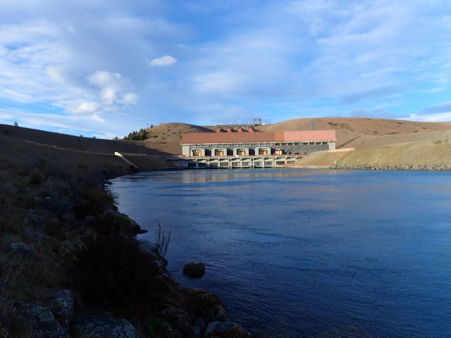 ブラッドさんってガイド メチャ風邪引いてるw俺と同じ鼻風邪鼻声自分はとっくに治ってるけどまあこの乾燥具合じゃしょうがないよね。ひょっとしたら10月ー日本の4月だから花粉症かな?でこないだトカラで会ったニュージーランド人と同じでエンドレスで喋りまくる。あー自分こう言う劇場型タイプのガイド苦手なんだよね、、、、。と思う1stインプレッション通りの不仲が最後まで続いたのは言うまでもないw !トワイゼルの街の周りにはダムをつなぐ発電設備兼用水の運河が走り回っている。大体幅は10LbのPEラインで17g程度のシンペン投げてギリギリ届くぐらいの幅 広いとこは更に20mプラスぐらい滔々と流れている。流速は人が歩く程度から小走りぐらいのスピードで流れている。でなにやるかと言うとなんか工場の横に現地の子供がワームで釣りしてるんだけど メッチャヒットしてた。釣り方はウキ釣りなんだどその子供の傍からフライロッドをだそうとする。俺はガキ押し退けて釣りするなんて出来んと思ってダンカン氏にスイッチ しかもフライもウキ釣りだw常日頃からおもっているんだけど フライって限りなく餌だよね、フライの連中偉そうに魚持って写ってるけど 例えばであるフライの教本には横向きに何かをイミテートした綺麗な写真が載ってる、ああこの水平方向で使うんだよねって思うんだよね でもね