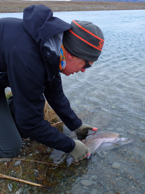 最終日 何だっけおしゃべりのトカラ友達が教えてくれたが クジがあってそれにあたると その川に先駆けて連れていかれるらしい。手付かずの特例河川なので魚釣りやすいって聞いたけど 全然そんな雰囲気ではない。 しかも当日ここ一週間で最高に風が強い。マジで20mくらいの風吹いてるW これあかんやつだろ!!でもやっぱフライでガイドのリモートが始まって、例のごとくガイドが魚探してそこにフライ投げるってやつだ。フライというかインジケータ重り付きってやつなんだけど、すぐ目の前でガイドの言うとおりに4-5mのフライキャストで数回流しててか10回以上同じラインを繰り返して打って ニジマス釣れた。面白くなさそうなのでガイドからそーっと遠くなはれて 終いにぶっちぎって一人で川を上がってみる。かなり藻がひどい河川で岩の頭にも4センチぐらいの厚みで藻がついている。滑るので岩の頭ではなく根元を踏みつつ歩いてゆく。例のごとく瀬を釣って行くのだが ニュージー最高ミニマム記録が釣れた35センチぐらいWWでもブラウンだ。それからボチボチ川を上がりながら投げていくのだがそこから2匹同じようなのが瀬で釣れた。いやキャナルでもそんな小さいの居ないのに抽選でお金払ってこれかいな。まったく呆れる。まあ川の中には例のスポーンの魚がボツボツ居てそれをフライで釣るのが唯一の道らしい。まあ、つまらんからやらんけど、そういえば前々日に例のエッグ流しをやってみた 当日 運河の時間帯が発電時間帯だったらしく通常より30cm水面上昇 通常投げてから歩くぐらいなんだけど全然間に合わんW 小走りでフォローしないと全然追いつかない。後輩のクワマン(やや体重大)とかにやらせたら多分キレまくると思うキャナルやそれに繋がる河川は時間帯で発電の影響で水量が変化するようだ。まあ一通り河川歩き回ったがサイズは上がらなかった。ダンカン氏はガイドと一緒に楽しいのか分らないが流心付近に居るニジマスにフライ投げてたけど数回掛かったけど釣れんかったらしい。今回の魚のパターンは大分分かった基本 密度の低い釣り堀に限りなく近いが夜間や早朝夕方はその限りではなくアプローチを考えれば釣れないことはない感じだ。何れにしろ魚を見つけることを考えていかないと無理な感じだ。昼の釣りで最もルアーに顕著に反応があったシーラントラウトだが、巨大でなくともある程度ゲームとしては成り立つ気がした。また天候や降雨等で日本と同じくデカいのがヒットする可能性も感じた。ガイドもある意味決して悪くはない サイトにおいては優秀だと思う。彼は魚を釣らせるという意味合いで言えば現状最も効果が出る方向を提示しているに過ぎないと思う。おかっぱりというポイントばれしやすい状況におけるプロとしてのスキルの発達の方向性は間違ってはいないと思う。