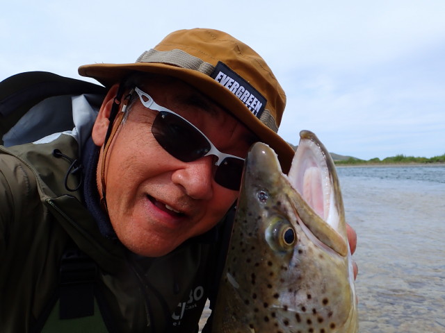 インジケーターとか付けたらフライってただぶら下がってるダケだよね?写真と違って真っ直ぐバーチカル方向にぶら下がってるわけ?それっってどうよ?自分はルアーマンだから先に錘がついててもルアーそのものは水流を受けて最初にイメージした通りの動きや姿勢を保つわけよ 自分はそこが納得いかないわけ。せめて錘や浮きは使わない方向でフライフィッシングとしてまとめたいって普通思うよね。そう言うとこなんだけどそう言うニーズにはこの人は全く答えられない人なんだなって思ってしまうわけ。そりゃ魚は釣りたいけどそんな釣りなら日本でも出来るし 逆に禁止してるとこもあるくらいな訳ということでやらなかった。ダンカン氏のファーストストライクはブラウンだった。次はお前だとか言われたけど俺は子供押し退けて釣るほど恥知らずではないわと言った。