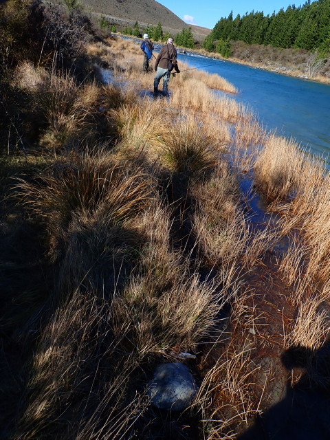 ダンカン氏を電話で呼びつけて仕切り直しで渓流へ いやーウェーダーって素晴らしいまあ藻のせいで滑りまくるんだけどね。知っている人は知っていると思うけどこの国フェルト底は違法らしい てかフェルトが効くとは思えん、ピンが長い磯靴ぐらいじゃ無いと多分滑る。自分はいまパズのビブラムで来てるけどまあ滑るてかなんでも滑るあとは自分の体幹とバランスの問題だけ。ただ水中以外はビブラム歩きやすいので岩の頭とかそこらは用途のバランスの問題かな。そのまま履いていけるというのも利点だ。