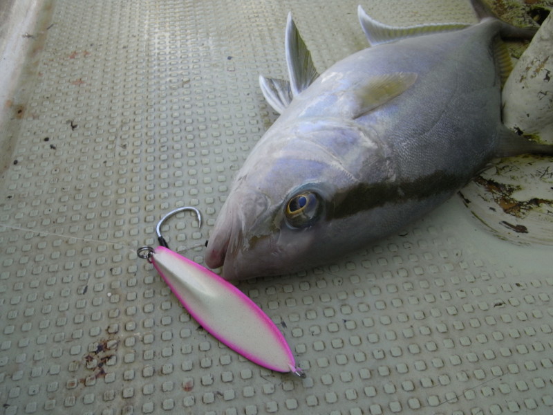 シルバーの魚体がギラッと反転しましたがフックアップせず誘い続けるとなにやら水中でヒットしました。どうやらGTではない様子・・・・・