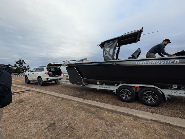 水のあるとこならどこでもワニは居るぜ」。というのが私の師匠の教えだw てか居過ぎだ。特に川の河口部分の柔らかい堆積泥の処やサンドバーが大好きだw看板があるとこにはまず居ると言って間違い無い。そこに朝練だ。初日にマッキーと乗っていた。港でよく使う連絡ボートベースの船に乗ってプロサーパイン川のスロープから船を降ろしてすぐ下流に見える広いサンドバーに船ごと刺さったw オマーンの漁師さん達もチルトロック外して同じことしてたな、。そこから飛び降りて硬めの砂の上を歩きながらメインチャンネルに向けてルアーを投げる。仕組みてきに説明するとすれば朝干潮になった状態で目の前に収束した川をみち汐と共に魚が上がるのを狙うというシーバスチックな釣りである。サンドバーからジグなら向こう岸ギリギリのとこで釣ってる船に直撃出来るかもしれないかな?位の川幅である。