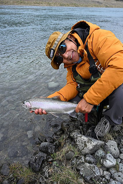 インジケーターとか付けたらフライってただぶら下がってるダケだよね?写真と違って真っ直ぐバーチカル方向にぶら下がってるわけ?それっってどうよ?自分はルアーマンだから先に錘がついててもルアーそのものは水流を受けて最初にイメージした通りの動きや姿勢を保つわけよ 自分はそこが納得いかないわけ。せめて錘や浮きは使わない方向でフライフィッシングとしてまとめたいって普通思うよね。そう言うとこなんだけどそう言うニーズにはこの人は全く答えられない人なんだなって思ってしまうわけ。そりゃ魚は釣りたいけどそんな釣りなら日本でも出来るし 逆に禁止してるとこもあるくらいな訳ということでやらなかった。ダンカン氏のファーストストライクはブラウンだった。次はお前だとか言われたけど俺は子供押し退けて釣るほど恥知らずではないわと言った。