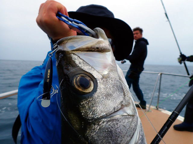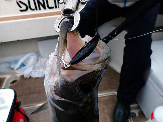 だが真っ黒なルアーは時々訳の分からない結果をもたらすのは間違いない。トラウトのヒットルアーであったり 夜釣りの当たりルアーであったり 大きいサイズに特効であったり 普通ではないヒットパターンがあったりもするのだ。簡単な話である。タックルケースにいろんなキラキラルアーが入っていて それ以外を選ぶとき真っ白や真ピンク それとも真っ黒のどれを入れとくか?という話なのだ。魚の捕食判断は必ずしも視覚に頼ったものではない 濁流の夜間の河川等が顕著な例だ 漆黒の夜間の釣りでも色は2の次となる。その逆に光るルアーってのも存在はするのだがそれが特効を示すにはまた別の条件があると思っている。ピンクはどうでも良いが黒という色にはいろいろ効果がある 例えば沖縄で縄切(クロタチカマス)や鰆対策で真っ黒いラインが使われたりするし 昔はナイロンテグスをわざわざ染料で染め直して使ったりもしていた。ただ単に見えるから親和性を発揮するのか?見えないからそうなのか?は分らないのだ。数回のヒラスズキ取材で私の私見は現状黒色はあまり目立っているようには見えなかった。むしろ見えにくいのでは?と思えるリアクションが多かったように思える。もしくは偽物感が凄くてそうなったかは不明だが 通常のヒットエリアを過ぎてもヒットする事例が多かった。視覚という点からの検知であるが故に光量は大事だろうが当時天候は曇天での話だ。魚の色覚やピント機能と彼らの処理脳がどうなっているかはわからない 人間側から見るにそれらの処理能力が低い場合 ただのモコモコする棒状の物体に見える可能性もあるだろう。果たしてこれが世に出ているその他のオマジナイレベルの事柄と同じなのか?それとも有効な切り札となるかは これから高水温を迎えてどういう反応が出るのかは検証していこうと考えている。