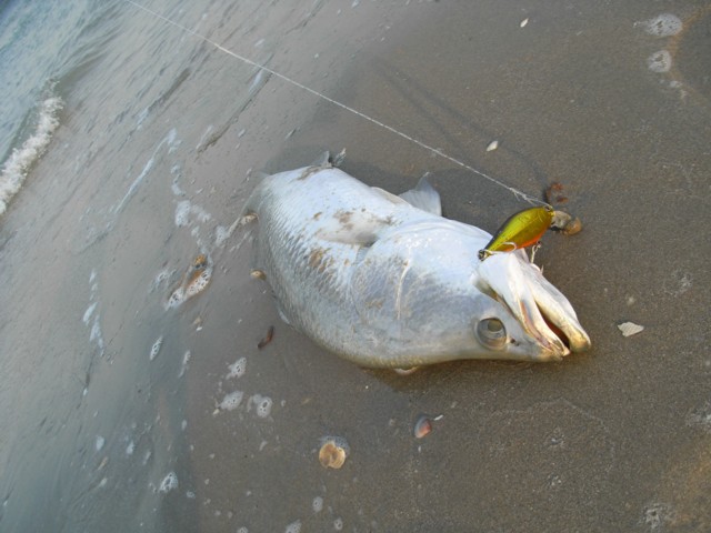 80センチ台のバラマンディが15本程はつれたと思う。基本は渓流のミノーイングと同じである。遠くはチンパンでも釣れたが