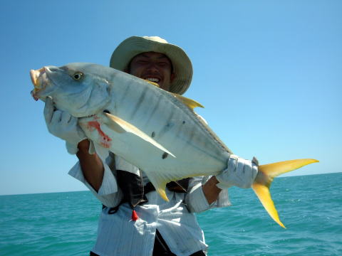 ジムと沖に行ったGTが釣りたかったらしい。私と他3名はリザーバーでウェンロックにいけなかったことを
