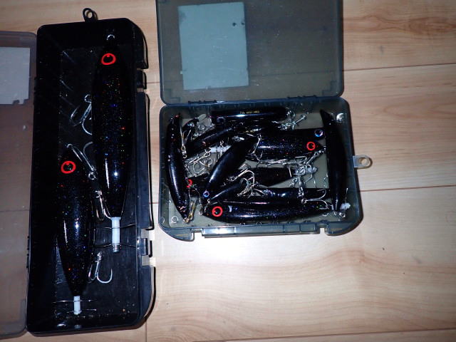 自分はあまり何カラーが効果的とは言わない人間だ 魚の視覚に頼った捕食に関して 捕食の判断材料の1つになり得ても総合的に獲物に取らせたいその先の判断につながるかは不明だからだ。今回真っ黒のタックルボックスで何回か釣りしてみた。季節は春 ヒラスズキ大安売り中なので この結果が何時も保証されもしないし またその逆もしかりである。貴方は考えたことはないだろうか? 可視光線深度にいる魚は 黒いことが多い。魚には自らの体色を替える機能があるらしいが 何故に日が差すエリアの生き物は黒いのか?日焼け説もあるがW前向きに進化や淘汰的に簡単に考えるのはカモフラージュだが よく見れば全体が黒い場合もある。理屈では日が当たる側は黒くて 腹は白いというが イカなど全体が黒いし 魚も腹だけ真っ白ではない 当然深度における見え方も相手の居る深さにも影響されるわけで横や上から見ればその理屈には無理がある。だが何らかのカモフラージュであるかもしれない。例えば追いにくい色である 見えにくい色の可能性がない訳ではない。一般的に黒は目立つ色とされている勿論私にもそう感じる事柄は多いのだが。サーフェスとアンダーサーフェスではその印象は大きく差が出る。